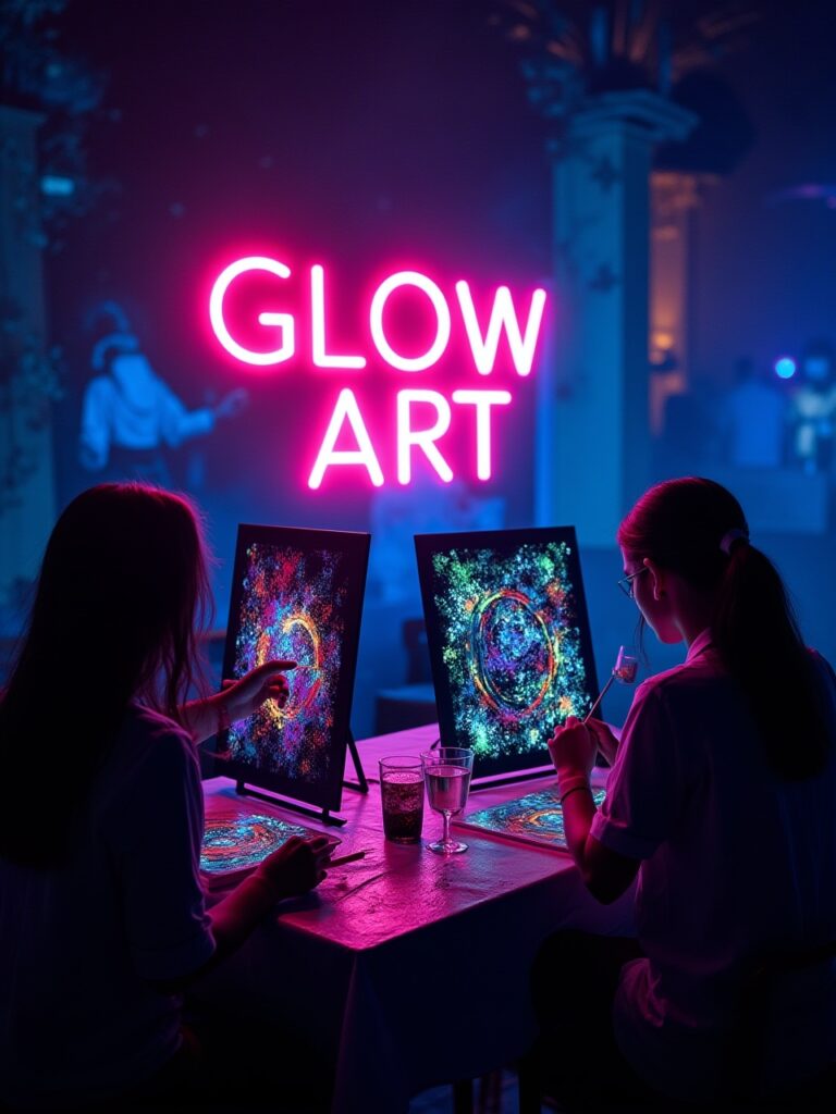 Crea arte bajo luces UV en Glow Art. Pintura, diversión y creatividad para todos los niveles.
